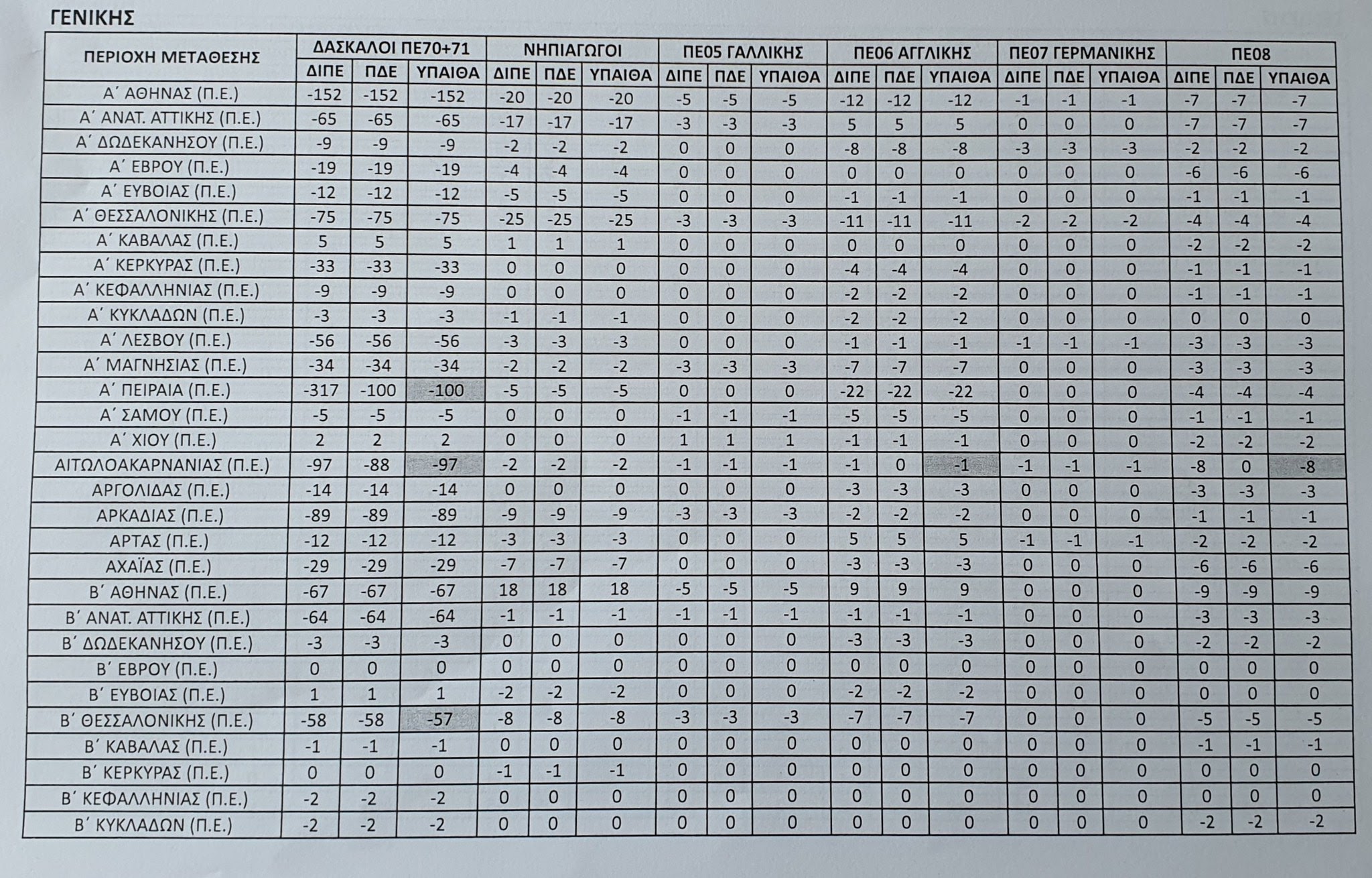 ΦΕΥΓΟΥΝ 15 ΔΑΣΚΑΛΟΙ ΠΕ70, 5 ΝΗΠΙΑΓΩΓΟΙ ΠΕ60, 1 ΑΓΓΛΙΚΗΣ ΦΙΛΟΛΟΓΙΑΣ ΠΕ06